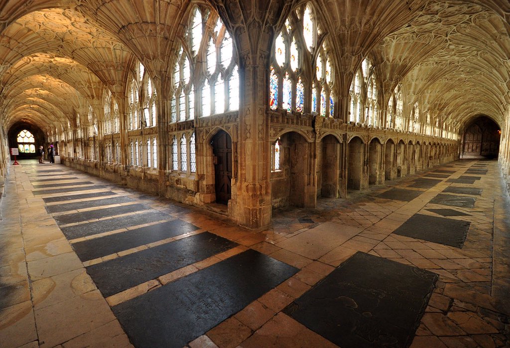Row of the 20 carrels in Abbey of St. Peter (now Gloucester Cathedral), built in 1381-1412.
