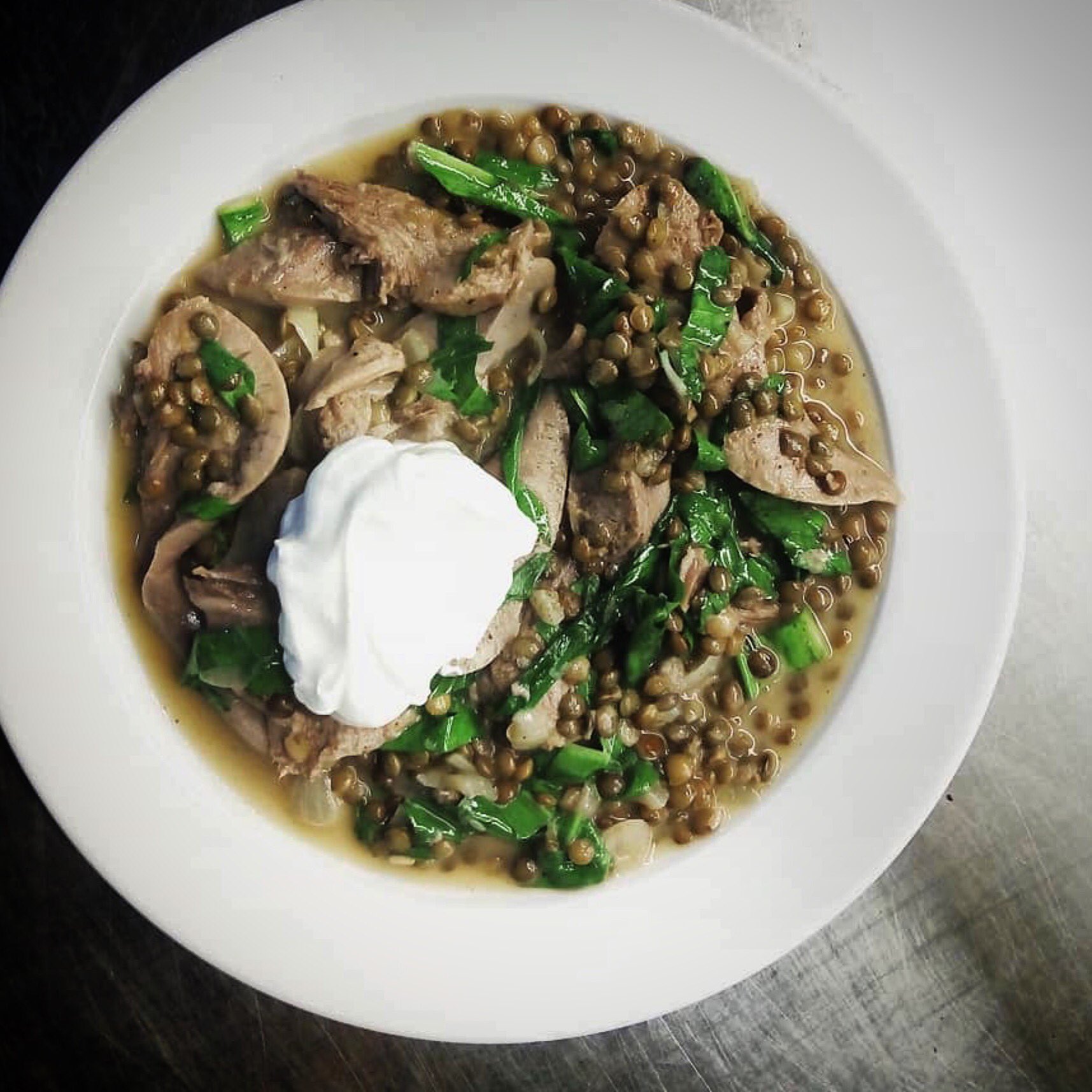 Lamb's Tongue, Lentils and Wild Garlic for lunch today. @StJBreadandWine