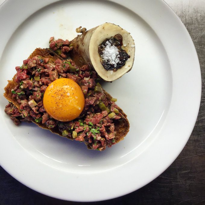 Beef Tartare on Dripping Toast with Bone Marrow, for moments when you are in need of some fortification. The fat soothes, the Dexter beef strengthens, the toast comforts, the cornichons and capers uplift. Powerful magic. CONNECT