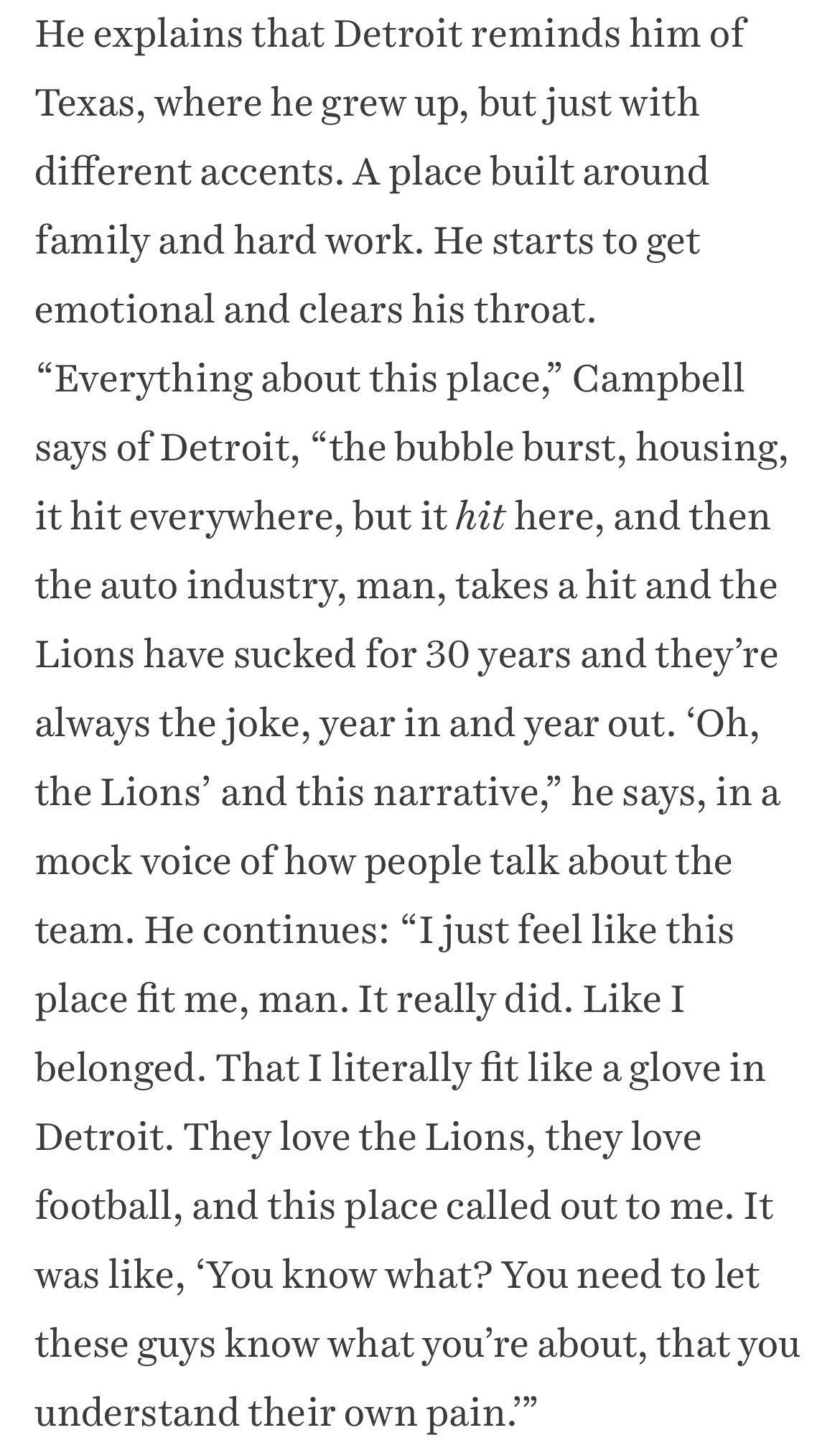 “All the stuff that’s been here that has kept us from winning. If we really want to go where we want to go, we have to get this stuff out. The last bit of losing has to get out of here,” Dan Campbell